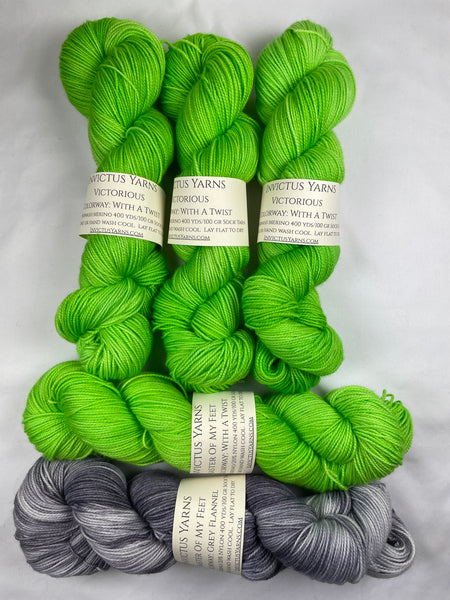 Base: Victorious ($72)Colorway: With A Twist x3Base: Master of My Feet ($50)Colorways:With A Twist x1Grey Flannel x1